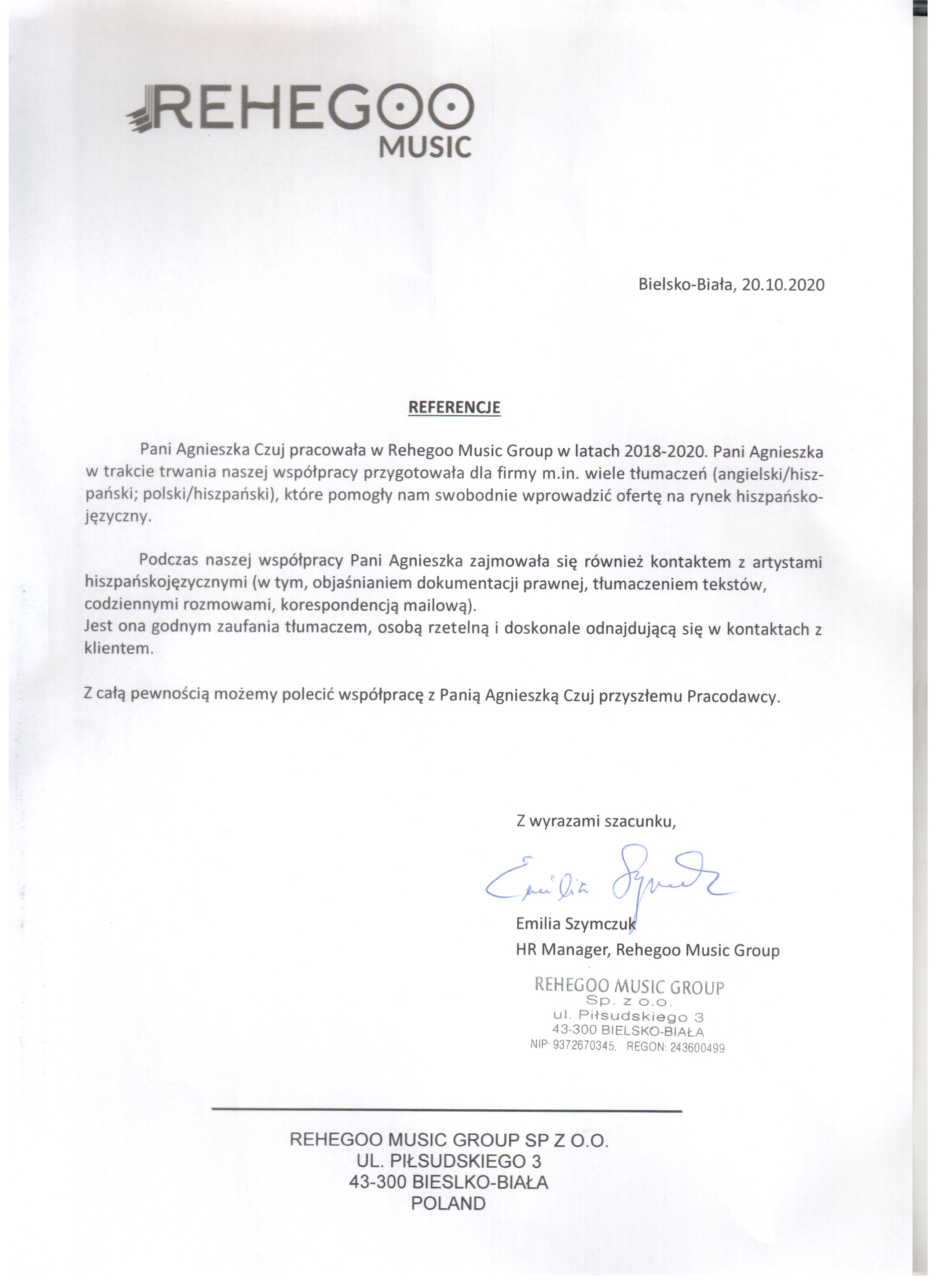 „Pani Agnieszka jest osobą sumienną, kreatywną i otwartą na nietypowe zlecenia tłumaczeniowe."